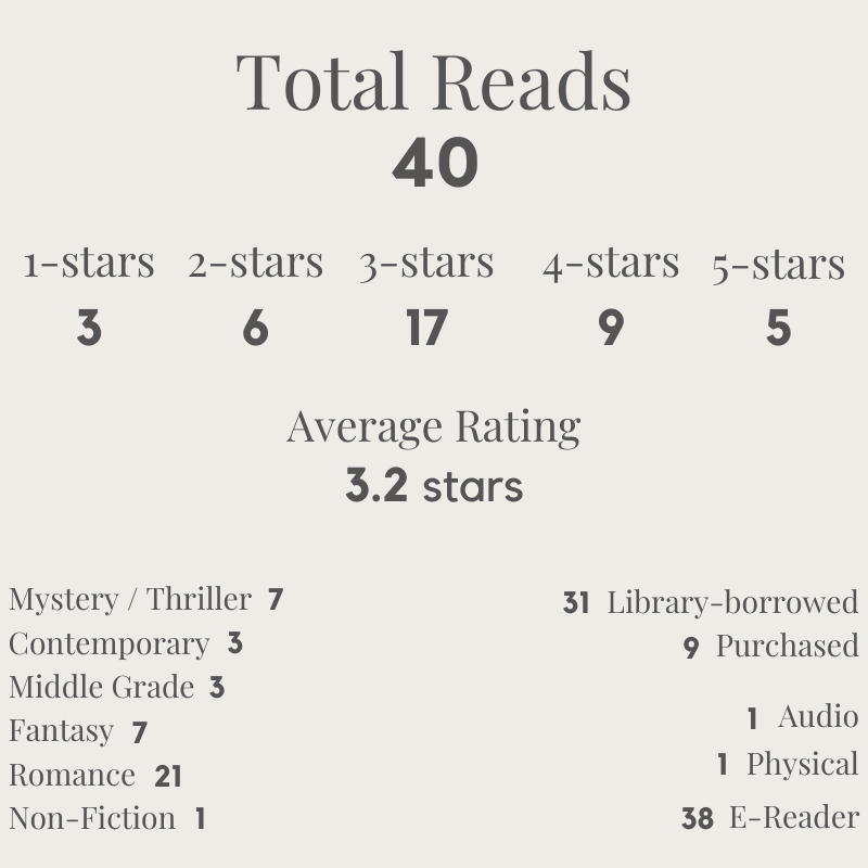 Overall, I’m not mad at January as a reading month. I had some good books in there. I even managed to sneak in a non-fiction at the end of the month too which I’m very glad to have done. My nonfiction reading continues to remain strong.